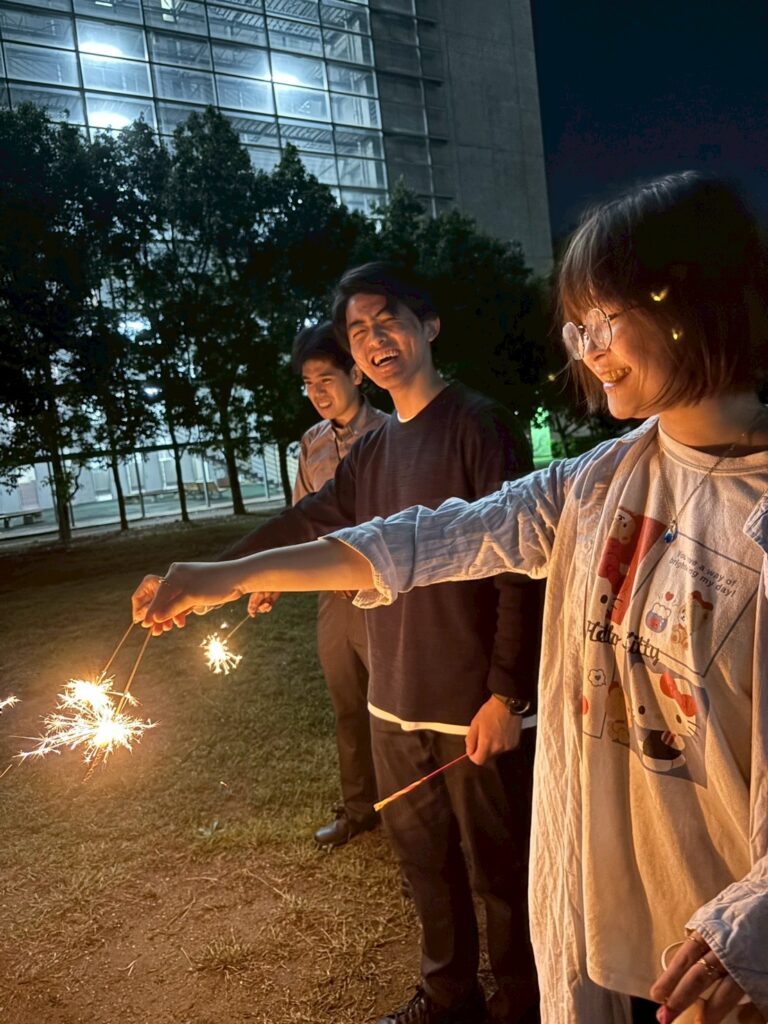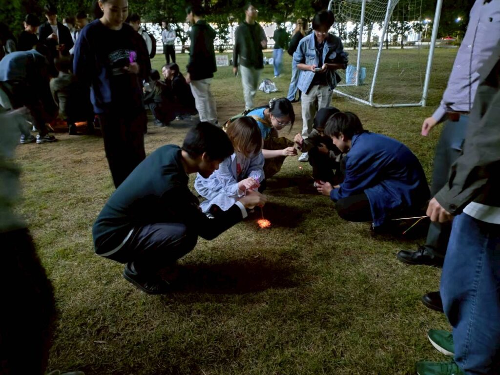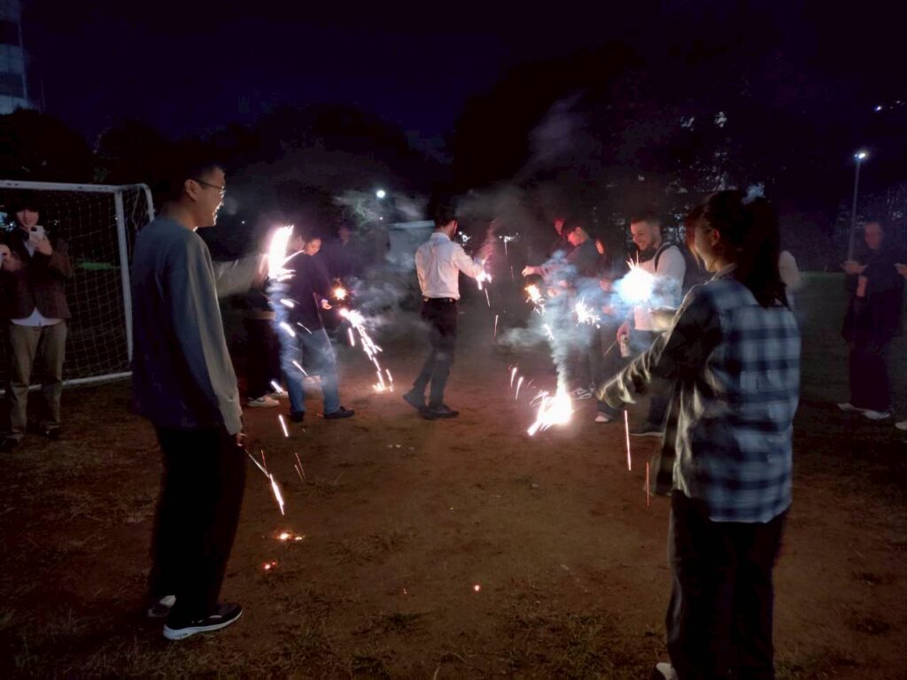 10月17日 創域会学生部が主催して花火大会&飲み会イベントを開催しました。少々季節外れな感もありましたが、安全を期して小さな手持ち花火だけを使ったことで、かえっていい雰囲気になりました。