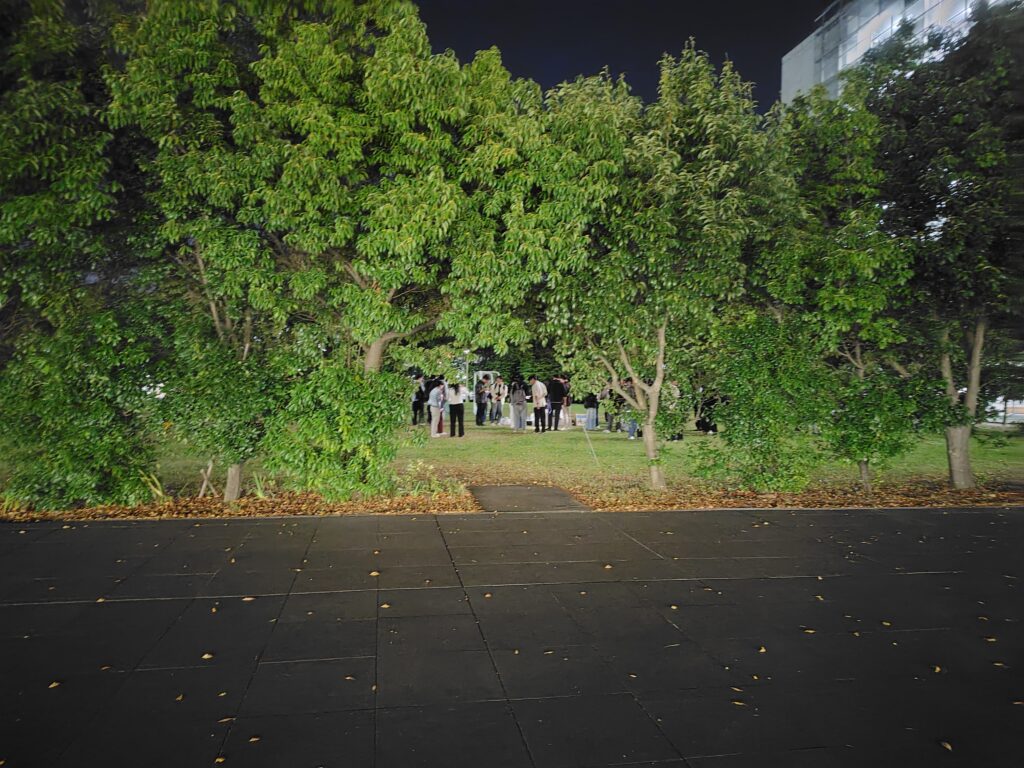 学年交流会の熱気をそのままに、向かい側の交流広場に移動。柏キャンパス恒例の新歓BBQ大会が始まりました。コロナでずっと中断されていましたが、やっと再開することができました。秋の日暮れはつるべ落とし。暗くなる前にお肉を食べ終わらなければ!ということで、開始前に火起こし隊が炭を万全の状態にして待っていてくれました!