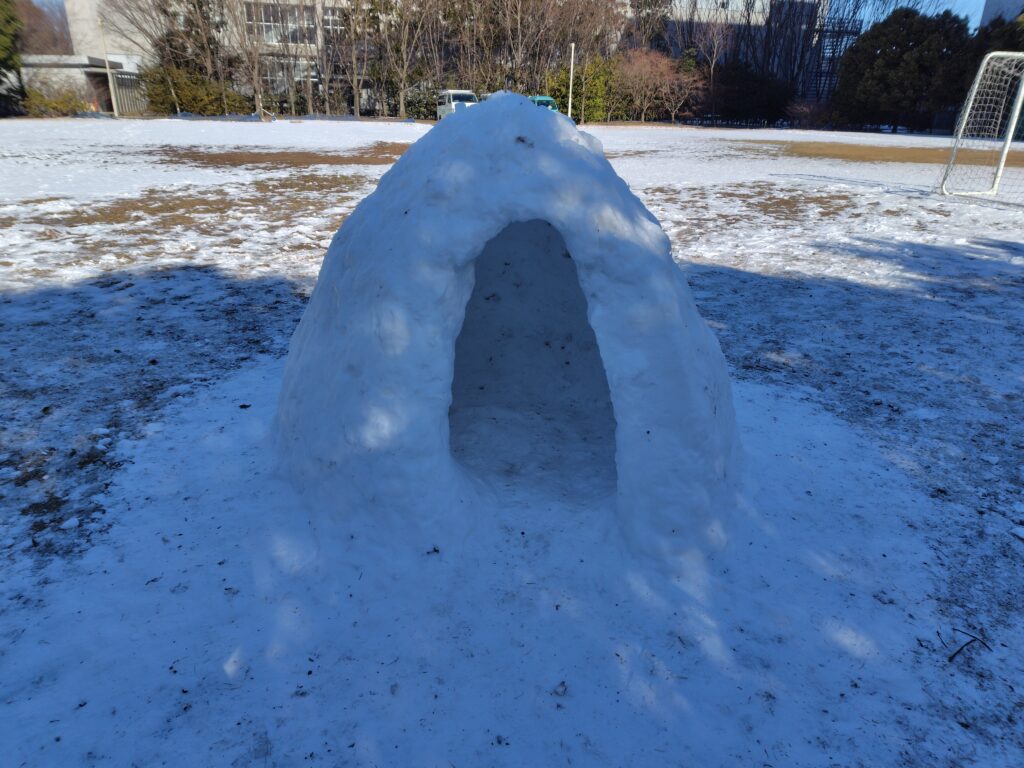 2026年2月9日 選挙とオリンピックの週末は、予報通り関東南部にも雪が降り積もりました。予想通り月曜の朝には柏キャンパスの広場にかまくらが出現していました。